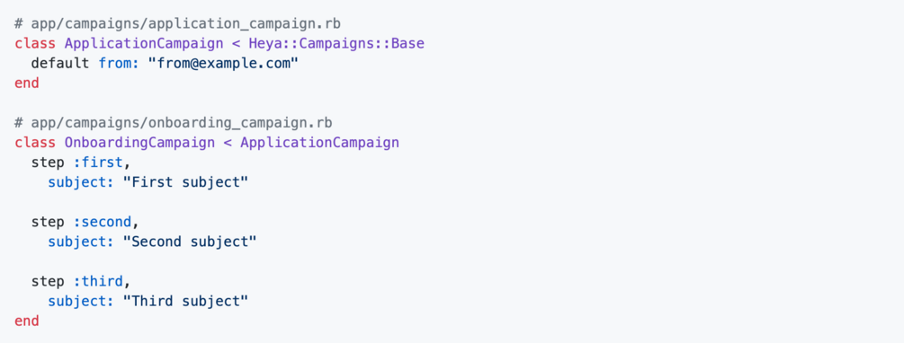 Heya is a campaign mailer for Rails. Think of it like ActionMailer, but for timed email sequences. It can also perform other actions like sending a text message.